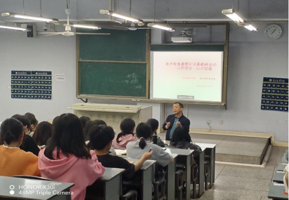 • 本着相互学习、相互促进的教研理念,助力中青年教师更好地实现专业成长,进一步落实“学生中心,产出导向,持续改进”的教育教学理念,教师教育教研室于2023年4月13日晚7点在博文楼312教室组织开展了教师教育课程集体听评课教研活动。
