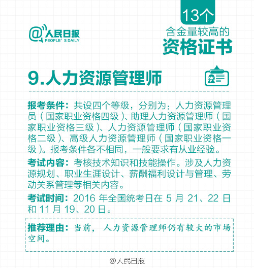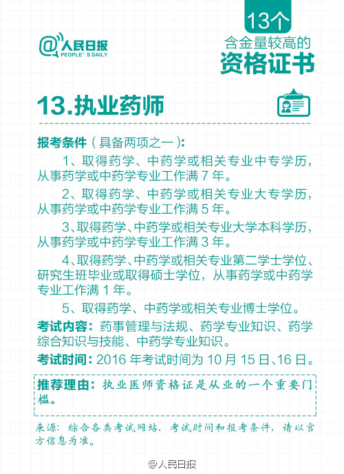 根据国务院一系列取消职业资格许可和认定事项的决定,原有保留的职业资格证书含金量进一步提升。那么,现在还有哪些含金量高的职业资格证书?获取资格有哪些要求?资格认定考试都考什么内容?……含金量较高的13个资格证书↓快快记下来吧!