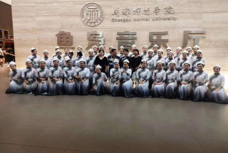在长达半年的创作、排练中,参演学生在李秀明、王文娟两位老师的指导下,利用课余时间,刻苦训练,于2023年8月25日在成都师范学院渔夫音乐厅现场展演,同学们现场表演两首作品《嘿卡牛卡》《背出巴山新生活》。《嘿卡牛卡》表现彝族同胞在新时代的幸福生活。彝语“嘿卡牛卡”意为“心情愉悦,开心”。歌词采用彝语演唱,调式为羽调式,抒情婉转,华彩乐段采用花腔演唱技法,轻快、活泼。《背出巴山新生活》以流传于四川东北部巴中市通江县、南江县的“巴山背二歌”为素材进行创作,唱词以七言格律为主,采用赋、比、兴的表现手法,用川东北区域方言演唱,调式以徵调式为主,唱腔高亢悠扬,结束时的一声甩腔“走起”,极具地域特色。“巴山背二歌”于2006年被批准列入第一批国家级非物质文化遗产名录,本次展演通过合唱的形式演绎川东民间音乐文化。