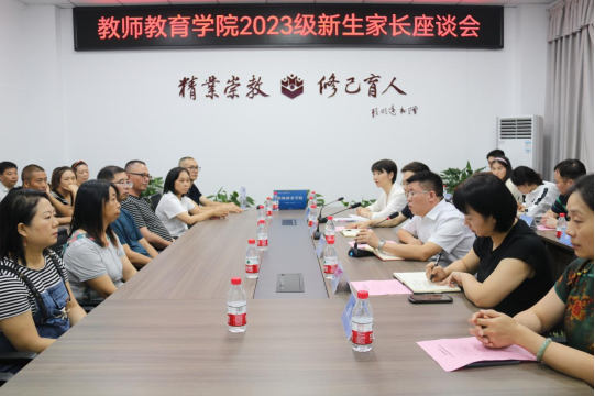 为顺利做好新生适应性教育,形成教育合力,2023年9月12日晚上,教师教育学院在博文楼206A会议室举行2023级新生家长座谈会。党委书记王燮辞、院长叶怀凡、党委副书记王文娟、副院长赵栅凌、教学科研办主任彭静、小学教育专业教研室主任刘勉、特殊教育专业教研室主任陈立、2023级新生班带班辅导员及部分新生家长参加本次座谈会。本次座谈会由党委副书记王文娟主持。