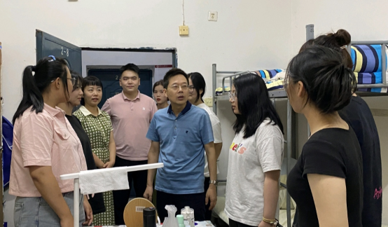 • 为深入了解2023级新生入住适应情况,帮助新生更好更快地融入新集体与新环境,2023年9月13日下午,党委书记王燮辞、正处级组织员田江、党委副书记王文娟、副院长赵栅凌及2023级带班辅导员一行走进新生宿舍,与新同学们畅谈新学期新生活。