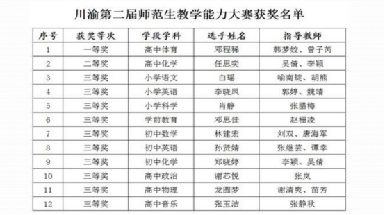 在近日落下帷幕的川渝第二届师范生教学能力大赛中,外围买球白瑶、李晓凤、肖静、邓思佳四名同学经过长时间的备战和激烈角逐,凭借出色的表现和实力,斩获省赛三等奖佳绩。