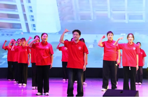 晚会在精彩的乐队表演和现场观众的欢呼声中拉开帷幕。歌舞类节目如《飞天》《家乡月》以其动人的旋律和优美的舞姿瞬间点燃了现场的气氛;语言类节目如舞台剧《江姐》、朗诵《觉醒年代》、心理情景剧《都是为你好》则以赤忱热烈的爱国情怀和感人至深的内容引发观众的共鸣;手语表演《凤凰欲飞》则以灵动的指尖艺术,展现了文理学子的青春风采与蓬勃朝气;师生合演歌舞《二十年来再相会》,悠扬的旋律和轻松明快的节奏表现对未来的无限憧憬。整场晚会高潮迭起,观众们沉浸其中,不时爆发出热烈的掌声和欢呼声。