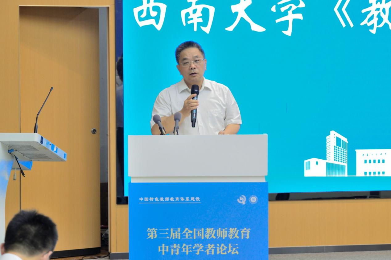 西南大学副校长邹芙都在致辞中深刻阐述了新时代构建中国特色教师教育体系对国家战略及教育强国建设的重大意义,并对论坛推动知识共享与思想碰撞寄予厚望。
