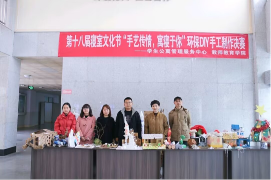 为深入学习宣传贯彻党的十二大精神,增强寝室成员之间的团队凝聚力,调动学生参与环保项目的积极性,由四川文理学院学生公寓中心和外围买球的app十大平台联合举办的“手艺传情,寓寝于你”环保DIY手工制作大赛决赛于2023年3月2日上午在博文楼一楼大厅举行。学生公寓管理中心张磊、外围买球党委副书记王文娟、副教授纪瑞祥,专职辅导员洪双、赵会辉、魏靖、杨文明老师出席此次活动并担任评委。