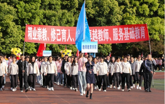 在开幕式现场,彩旗飘扬,花团锦簇。伴随着激昂的运动员进行曲,各参赛部门方阵依次入场,他们步伐矫健、意气风发、热情洋溢,依次走过主席台接受检阅。外围买球的app十大平台方阵由34名教师代表和64名学生代表组成,他们身姿挺拔,步履铿锵,口号嘹亮,彰显着“学高为师,身正为范”的笃定信念。